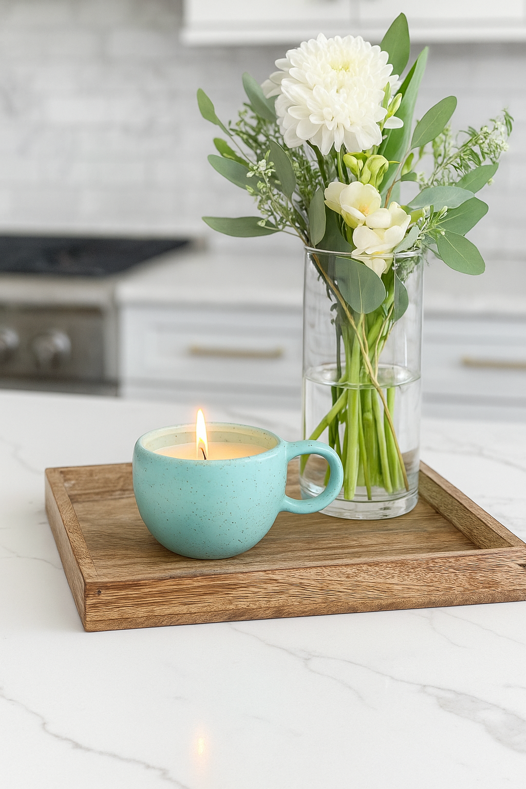 Transform your space into a fresh spring oasis with our Speckled Turquoise Mug Candle. Made with high-quality wax in the clean scent of apple, grapefruit & lemon. Once your candle has burned out, use the large reusable mug to enjoy your favorite beverage.